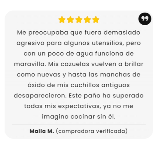 Tanto si quieres eliminar las manchas de grasa más difíciles de tus ollas como devolver el brillo a tus utensilios de acero inoxidable, nuestro paño de lana de acero CocinaLimpia es tu mejor aliado.
